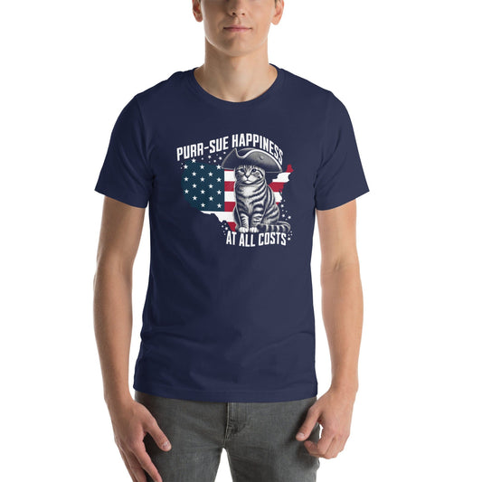 Purr-sue Happiness Cat T-Shirt | Patriotic Feline Graphic Tee